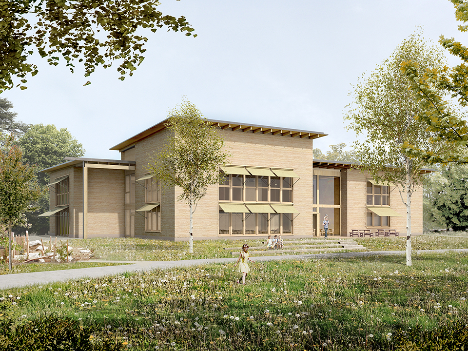 - la nouvelle Maison de quartier exploitant plusieurs matériaux géo et bio-sourcés locaux tels que terre crue (pisé), chaux-chanvre et bois, valorisant des savoir-faire artisanaux et impliquant les (futurs) usagers (programme des locaux, chantiers participatifs).