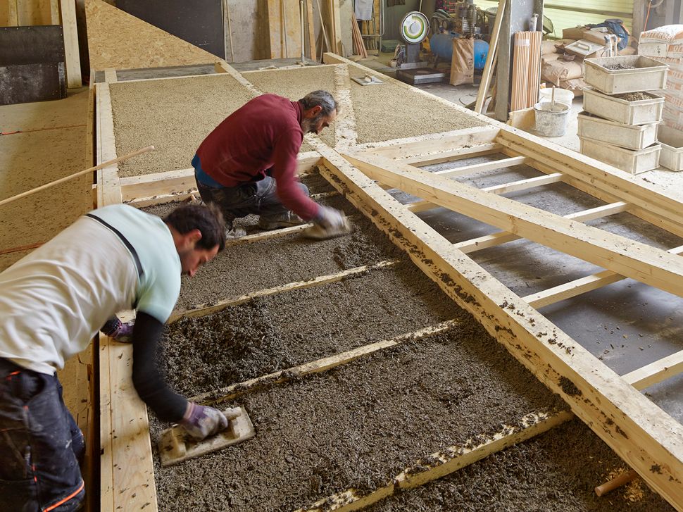 Maison de Quartier des Plaines du Loup, montage de l'ossature en bois avec remplissage en chaux-chanvre. Crédit: Michel Bonvin / Ville de Lausanne