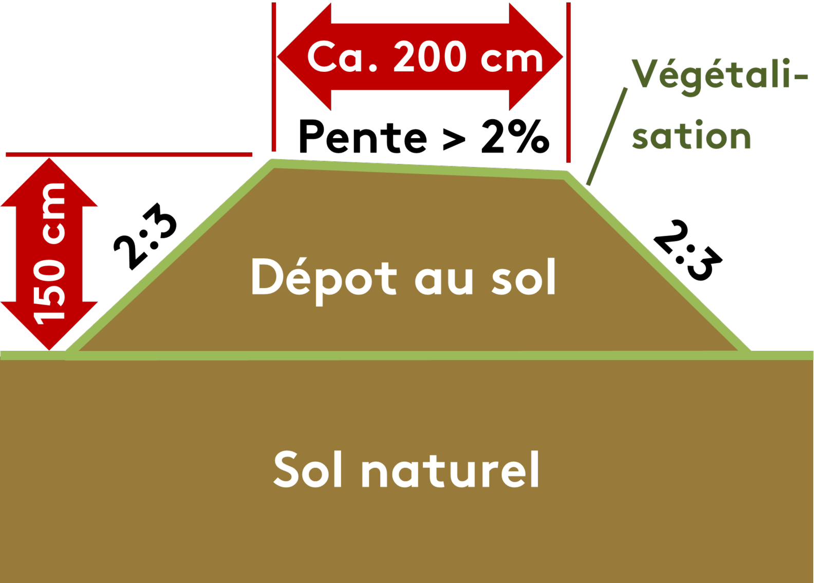 Les matériaux sur place (humus, terre, pierres, gravier, bois mort, etc,) sont dans la mesure du possible à réemployer pour les aménagements extérieurs. La fourniture de matériaux supplémentaires est à éviter.